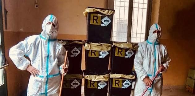 gli strumenti di pulizia utilizzati vanno buttati in un sacco resistente ben chiuso, attenendosi ad un’apposita procedura in